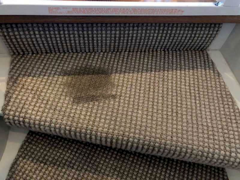 To determine which type of carpet you have, our technicians use a method which requires removing a small bit of fabric (on the stairs there are usually loose bits we can use) and burning it.
