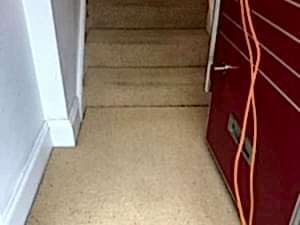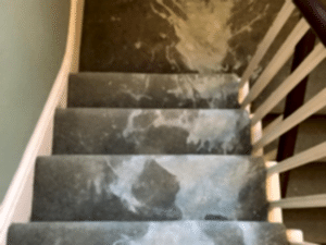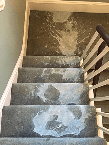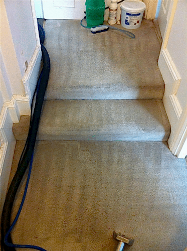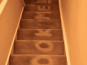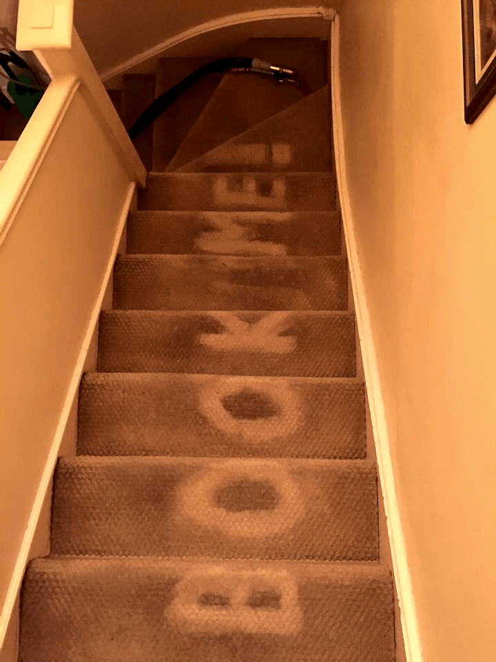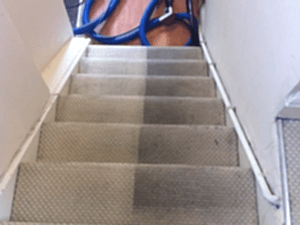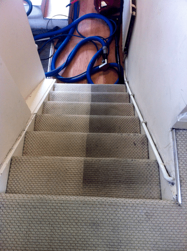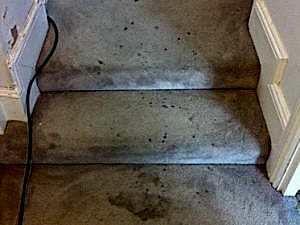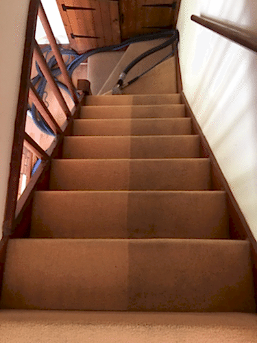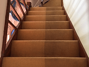 To determine which type of carpet you have, our technicians use a method which requires removing a small bit of fabric (on the stairs there are usually loose bits we can use) and burning it.